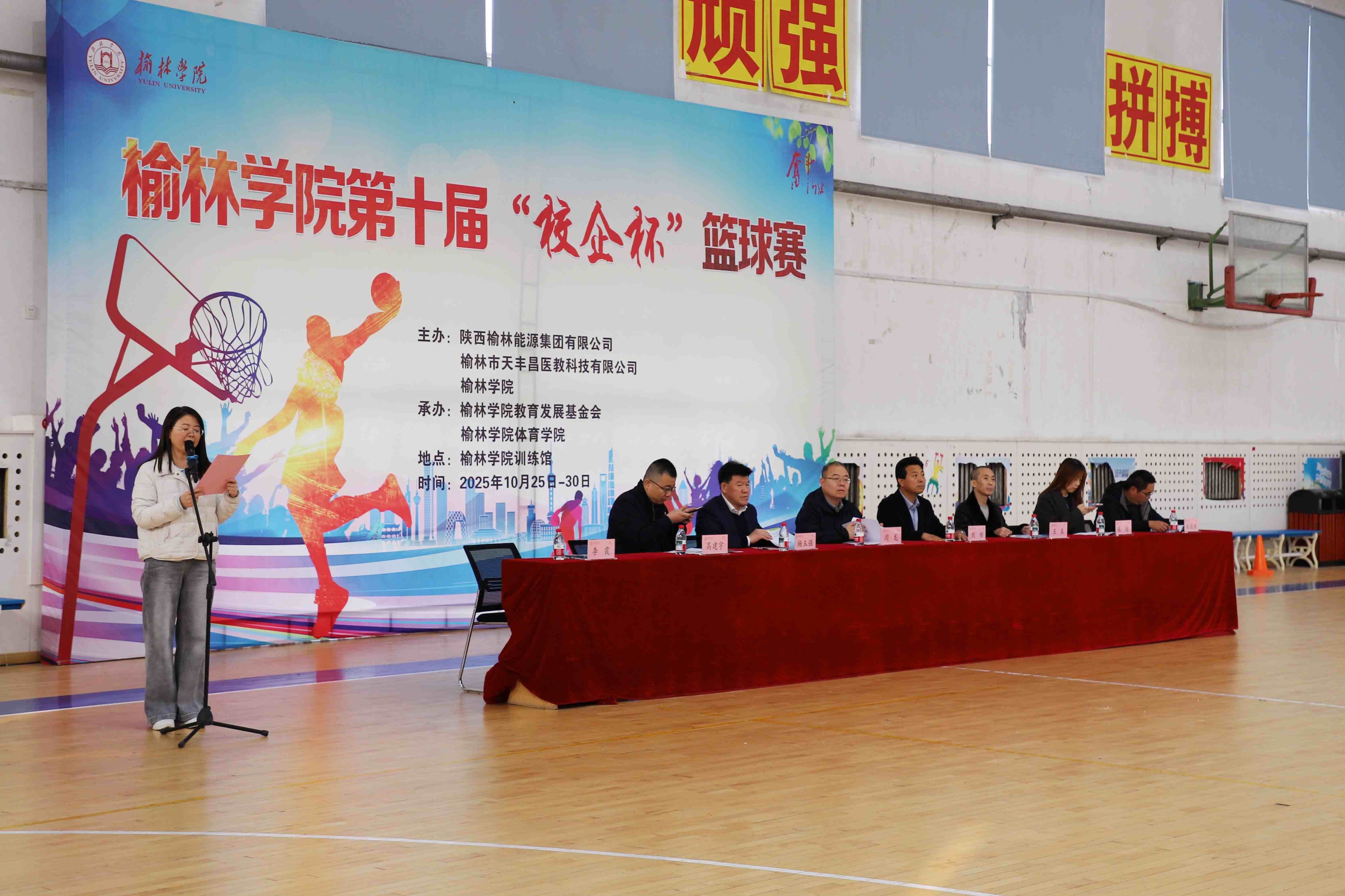 2025年10月25日,榆林学院第十届“校企杯”篮球赛正式拉开帷幕。榆林学院党委副书记闫龙出席开幕式并致辞,榆能集团工会主席刘刚,榆林市天丰昌医教科技有限公司董事长杨玉强作为协办方代表讲话。社会合作与校友工作处和体育学院部门负责人以及各参赛单位运动员共同参加开幕式。我所作为受邀请单位参赛,派出了李四东、徐宝帅、王峰、杜晓林、窦田、吴其瑾、王振杰、郭震伟等精干队员出战本次赛事。