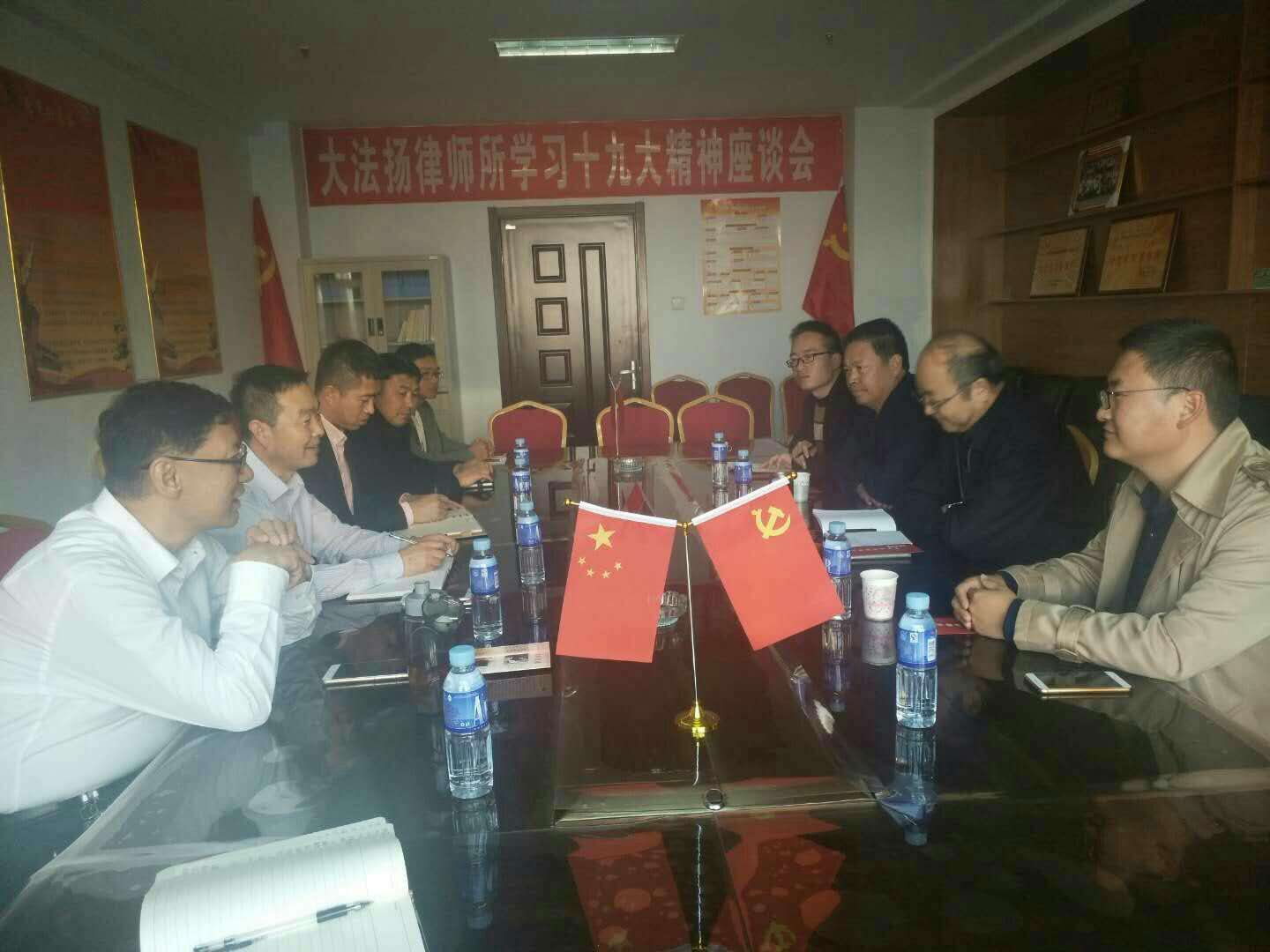 胡蔚豪主任首先对武广韬主任一行表示热烈欢迎,对富能所在1997年代理12688名农民状告裴家湾乡政府的案件赞誉有加,认为富能律师敢于担当,案件具有时代标志和重要历史意义。