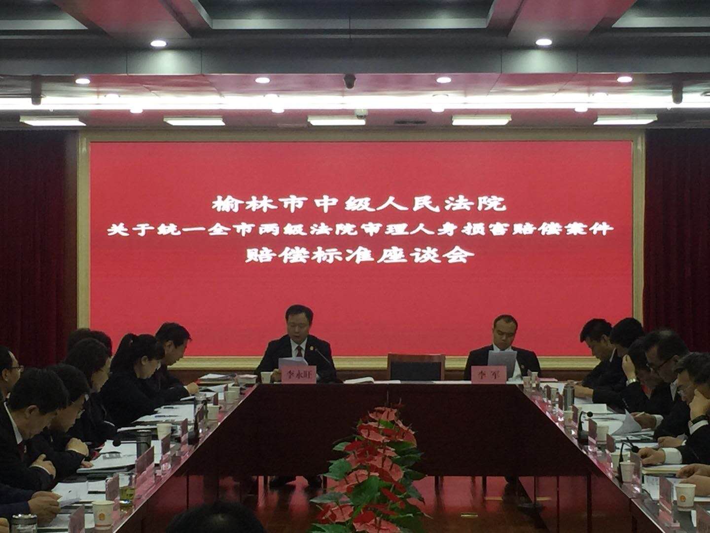 2018年4月20日上午,在榆林市中级人民法院召开了关于统一全市两级法院审理人身损害赔偿案件赔偿标准座谈会。会议由榆林市中级人民法院审判委员会专职委员李光亮主持,应邀参加会议的有陕西省高级人民法院资深法官,榆林市12县区法院院长、民庭庭长,榆林市司法局、律师协会、交警支队、人社局、保险协会代表,司法鉴定专家等。
