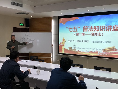 随着社会经济的发展、法治理念的深入,社会各界的法律意识纷纷提升。近期,我所顾问单位陕西靖神铁路有限责任公司再次邀请服务律师霍雨田进行法律知识讲座。讲座由公司“七五”普法领导小组副组长陈俊涛主持,公司总经理杨志光、财务总监张青芳出席了本次讲座。