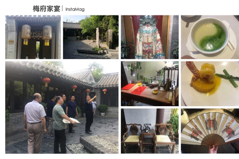 在京我所律师前辈赵榆生,更有心在“梅府家宴”接待,与数位退休的居京榆林老领导交流,共话法治未来。梅府位于北京市大凤翔胡同24号,是梅兰芳之子梅葆玖先生居住过的府邸。这里老板叫“东家”,经理叫“总管”,服务员叫“梅嫂”,菜品来自梅兰芳家传,依人数设定,菜单由老艺术家西振权老先生亲笔书写在扇面上,餐后赠送用餐者。曲径通幽三进院,优雅的包房,复古的陈设,呢喃的京剧萦绕,别有一番韵味。