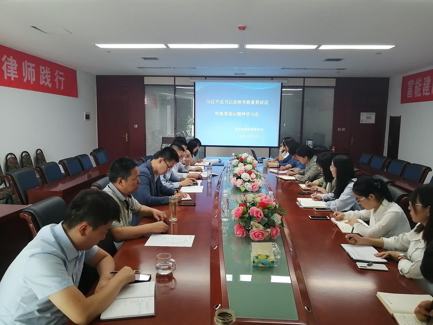 5月21日下午,我所组织召开会议,传达和学习习近平总书记来陕考察重要讲话和重要指示精神。党支部书记、主任武广韬,副主任徐良河出席并讲话,党支部副书记王彦主持会议并传达学习习近平总书记重要讲话和重要指示精神的具体内容,执业律师、实习律师等20余人参加学习。