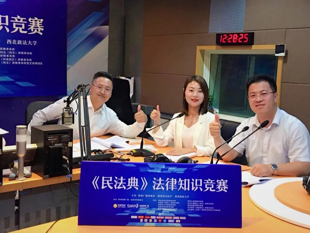 2020年9月2日,马飞荣、王彦和白芳三位律师受邀走进陕西新闻广播(FM106.6 AM693)直播间,担任当期《民法典》法律知识竞赛评委,接听参赛听众、网友热线,点评典型案例,讲解《民法典》法律知识。