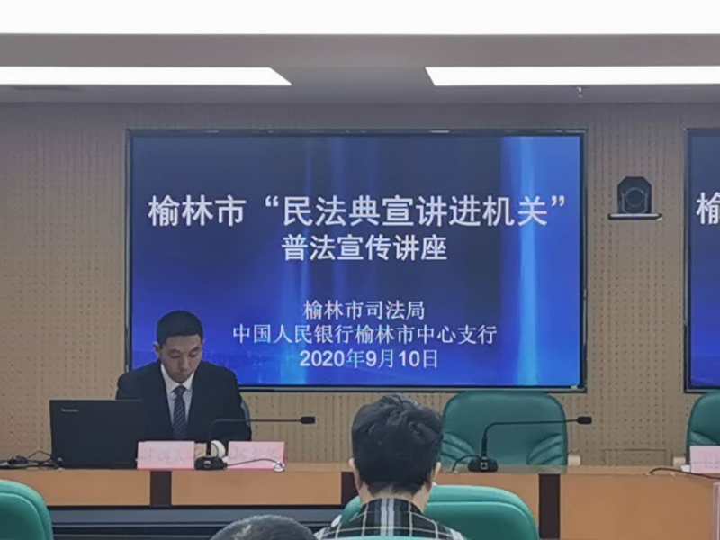 2020年9月10日下午,我所合伙人杨李冬律师,应常年法律顾问单位中国人民银行榆林中心支行之邀,在榆林市司法局的安排下,为该支行副科级以上干部职工开展《〈民法典〉知识解读及相关规范梳理》的专题培训,各县级支行同步通过视频连线的方式参加了培训。