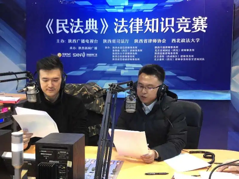 2020年11月4日,我所陈震律师、杨壮律师以及实习律师刘磊磊应陕西广播电视台之邀专程从塞上古城榆林到西安,走进陕西新闻广播FM106.6/AM693《说法时间》栏目直播间,作为特邀嘉宾担任本期《民法典》法律知识竞赛评委,就《民法典》法律知识与听众朋友进行分享。这也是我所今年以来第四次走进陕西广播电台普及《民法典》。
