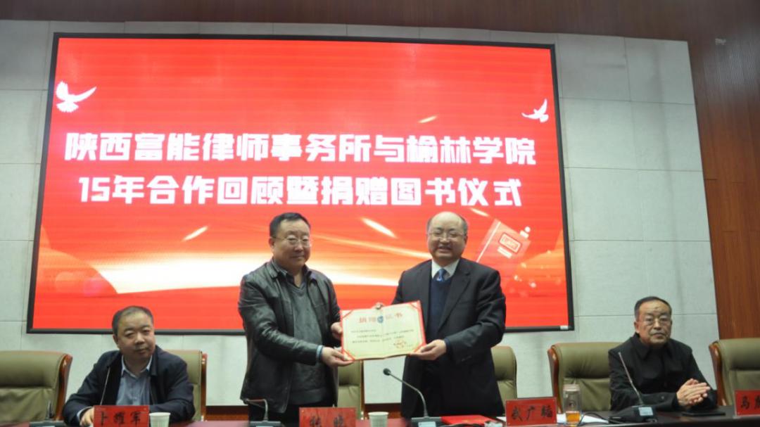 2021年3月26日,陕西富能律师事务所与榆林学院十五周年合作回顾活动暨捐赠图书仪式在榆林学院逸夫楼一楼报告厅隆重举行。