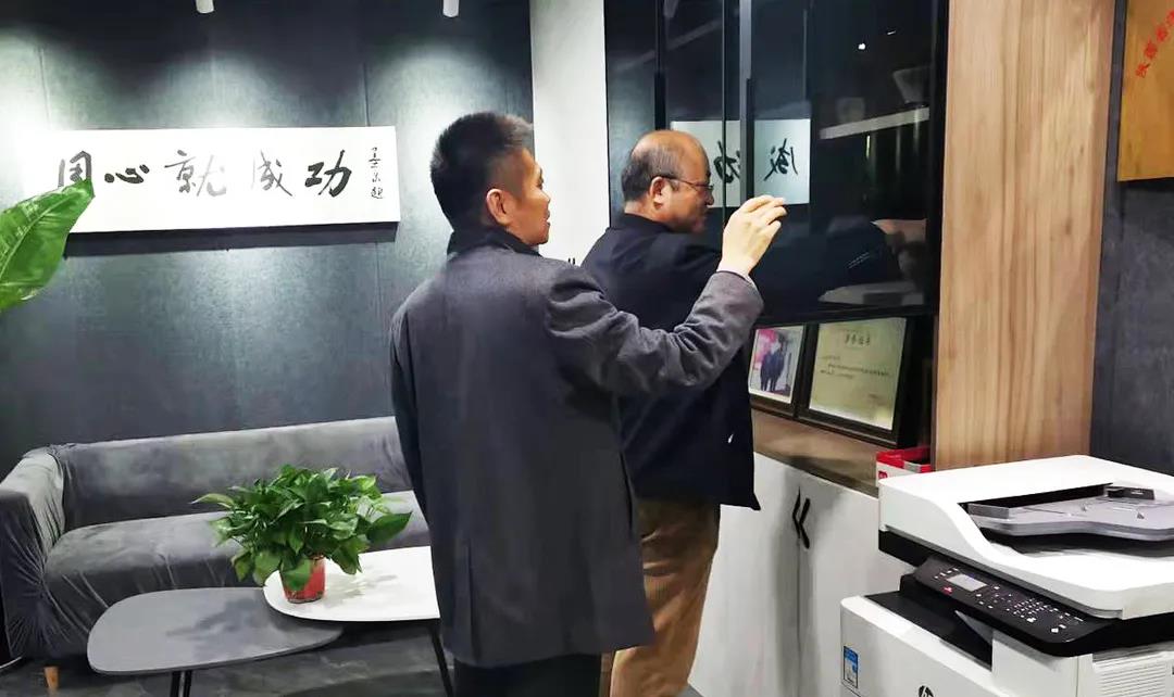 闫永宁主任等对武广韬主任一行莅临九成宫律所表示热烈欢迎,并介绍了富能发展业绩和武广韬主任职业履历、书香门第家世和与雪樵书法文化的渊源。