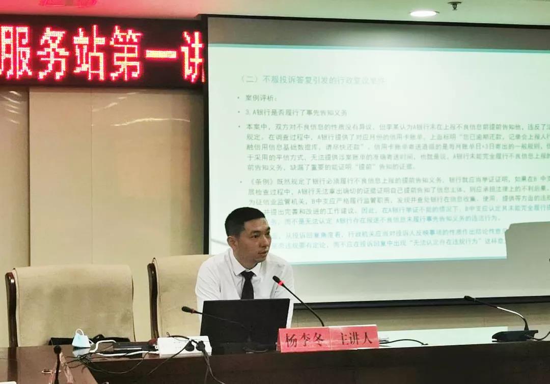 培训结束后,杨李冬律师继续前往设立于人民银行榆林中心支行11楼的“央行法律工作站”,为部分干部职工解答了关于征信异议、不动产登记、个人担保、常用合同签订注意事项等广大干部职工在日常工作中遇到的种种疑惑。
