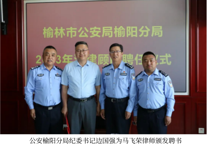 喜讯:马飞荣律师三度荣膺榆林市公安局榆阳分局法律顾问
