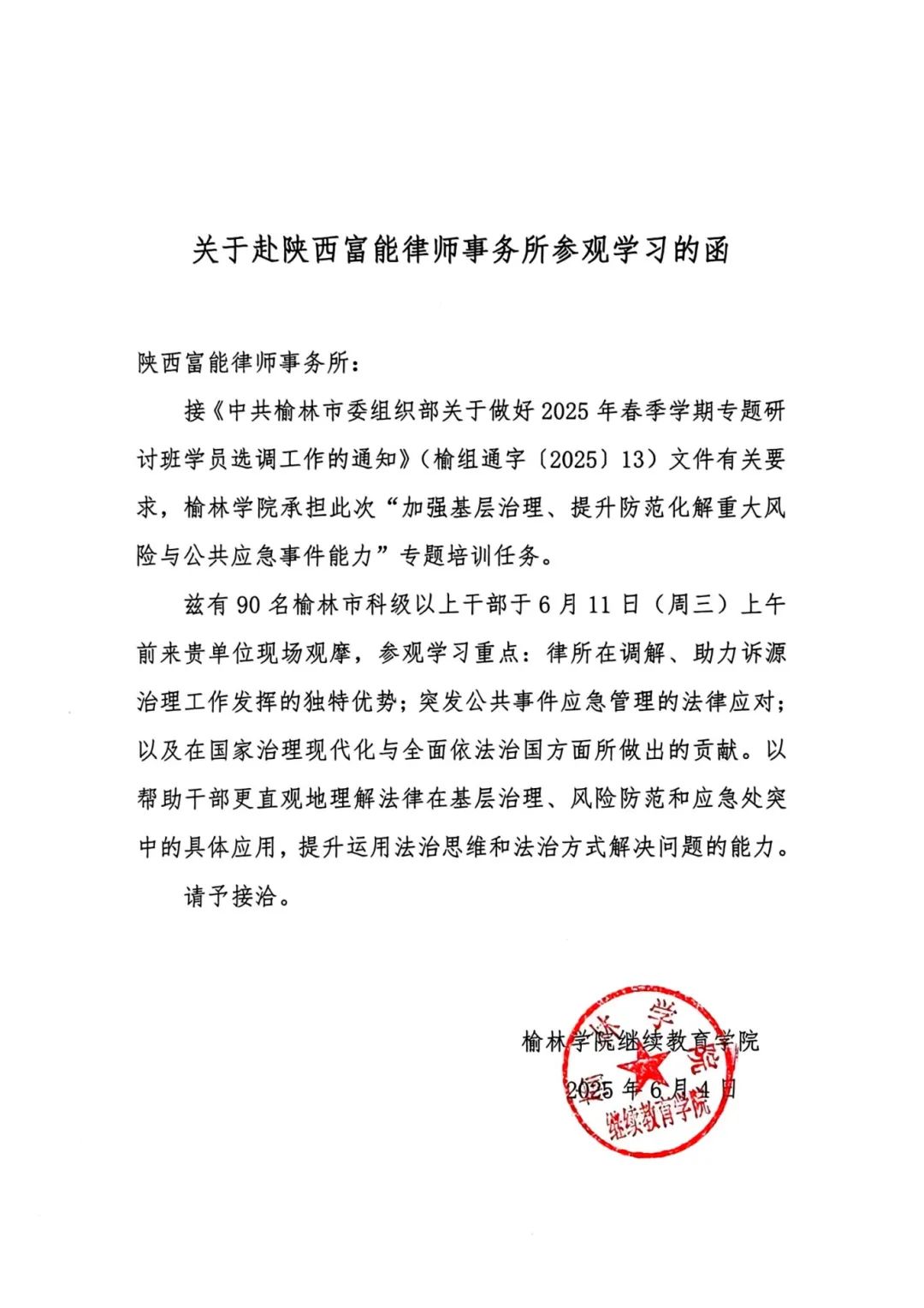 富能将继续搭建沟通平台,深化与政府部门、高校、企业及行业同仁的交流合作,为榆林法治建设与基层治理贡献更多专业智慧与实践力量。